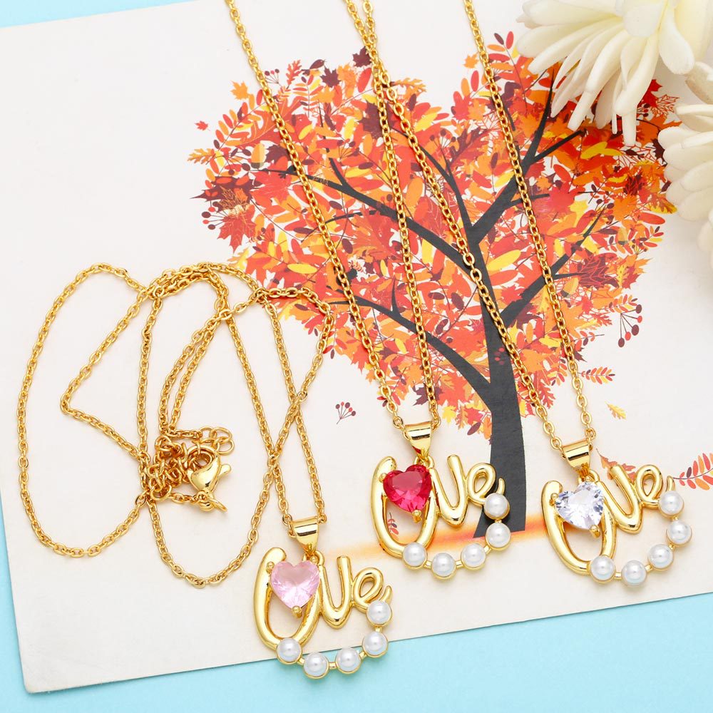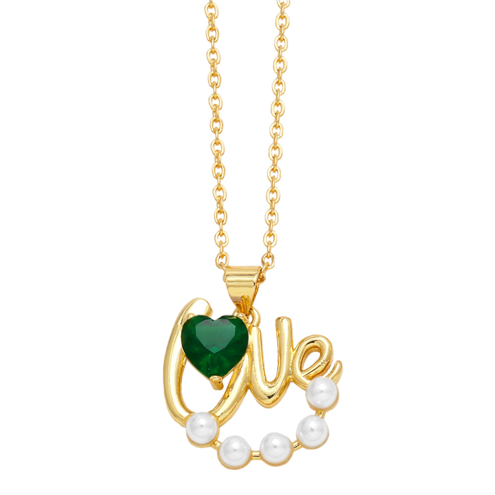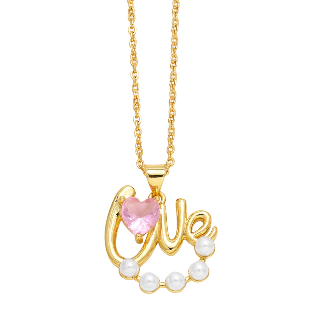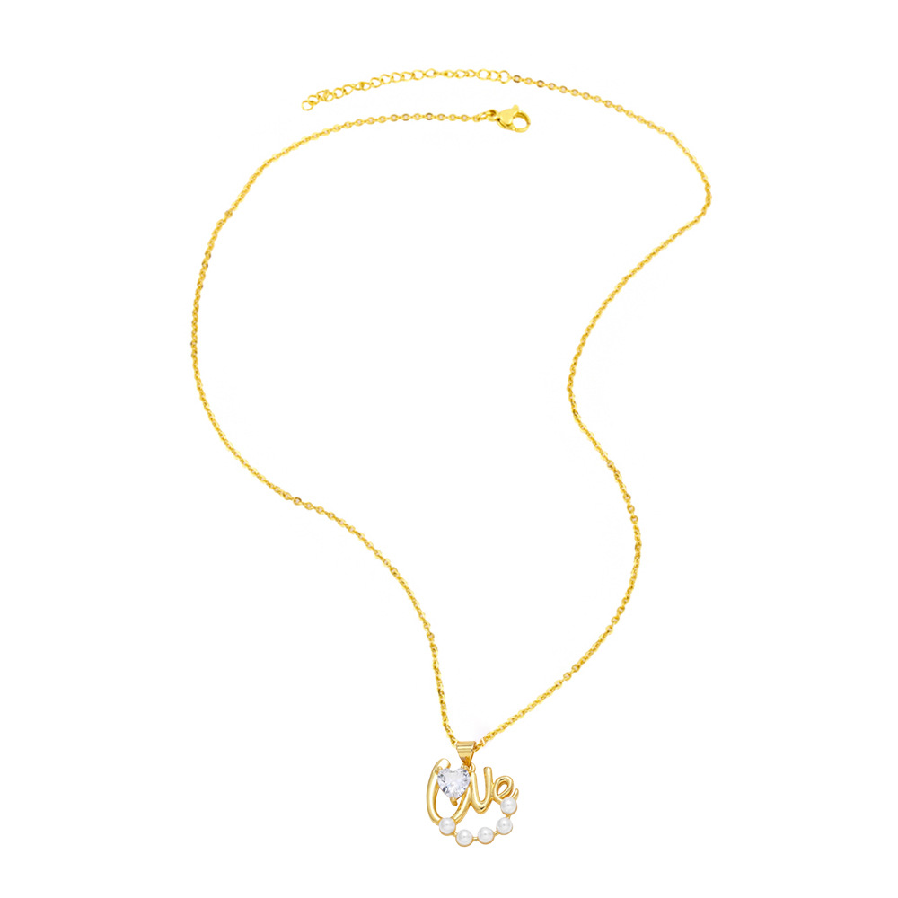 Retro simple pearl diamond heart LOVE necklace female net red INS niche design clavicle chain nkp72