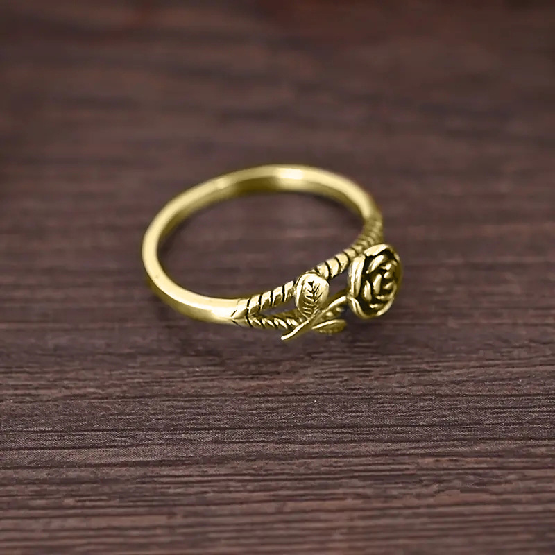 Retro style old flower ring three-dimensional rose classical thin circle ring temperament charming index finger ring