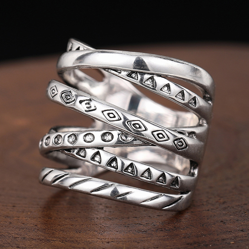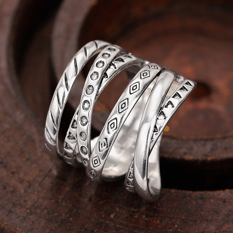 Retro vintage distressed rings for women fashionable cross-layered jewelry wholesale new style