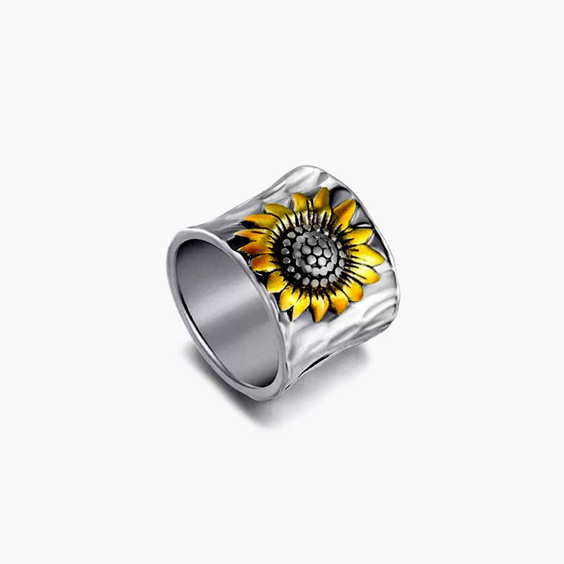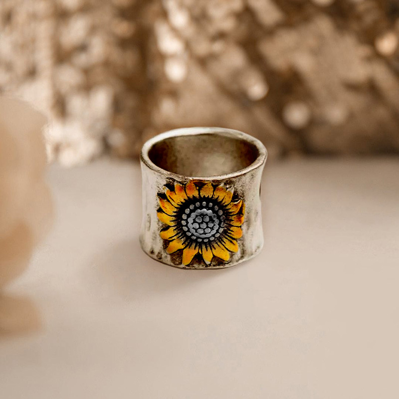 Retro wide ring for men and women couples sunflower pattern ring sun hot selling creative ring