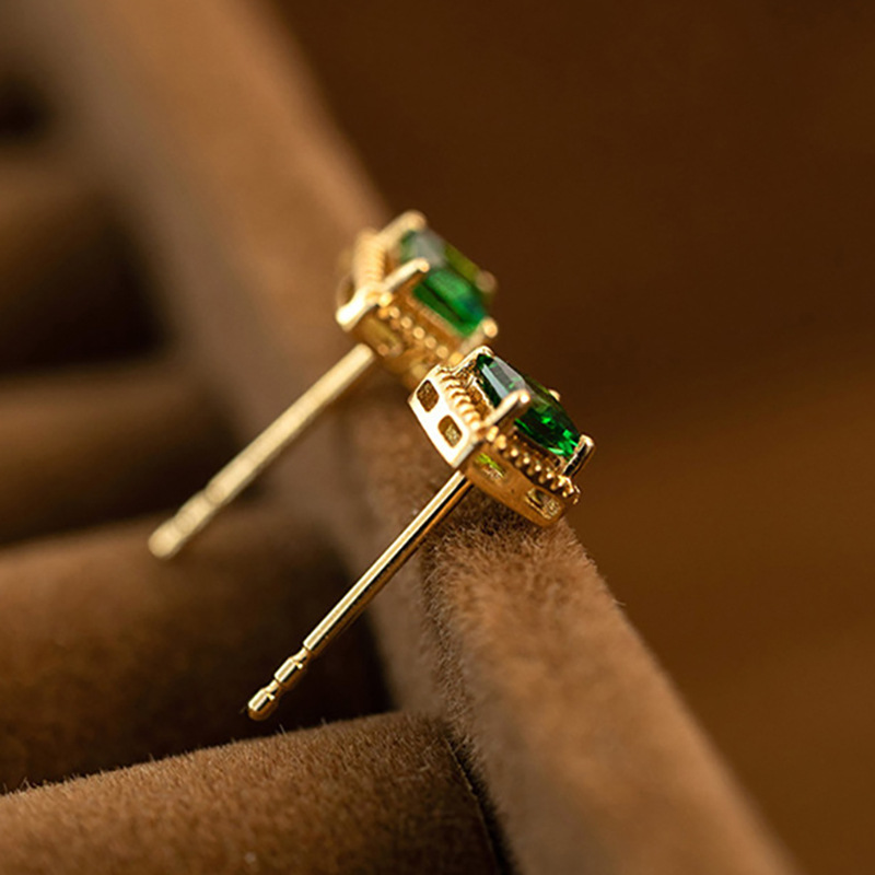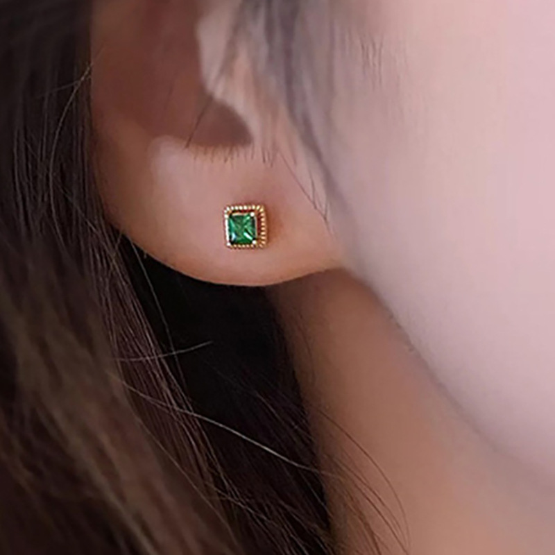 Retro zircon square earrings, gold sugar cube four-claw earrings, classic mini all-match geometric earrings
