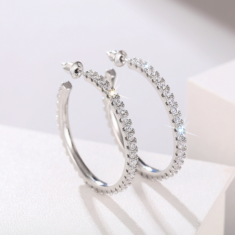 Ring-shaped personality earrings for women, holiday style, design sense, zircon earrings, fashionable micro-inlaid jewelry