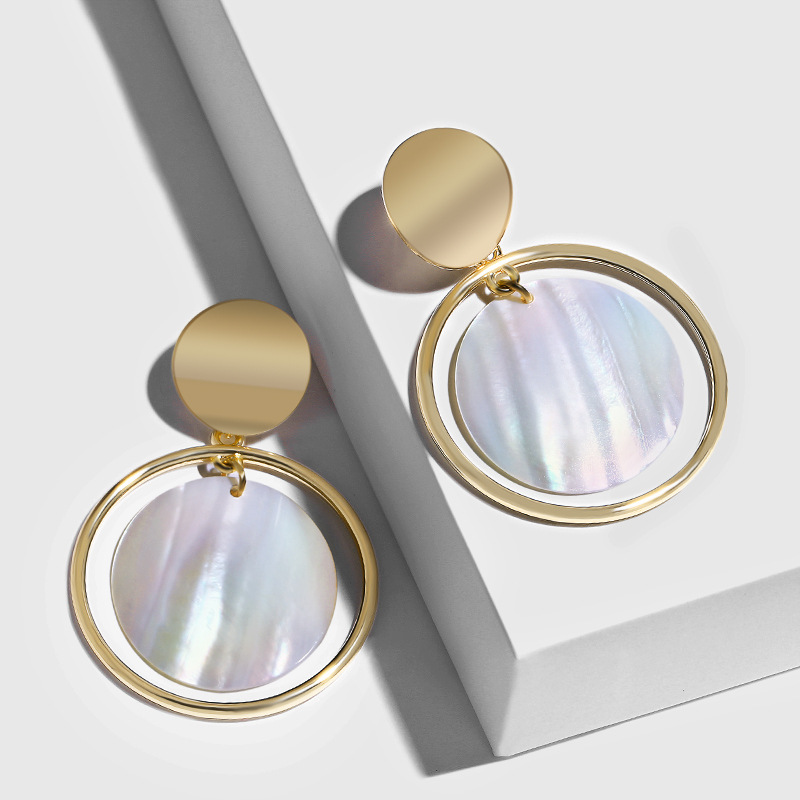 Round shell earrings, earrings, pearl earrings, European and American personality, cold style, super fairy jewelry earrings erp69