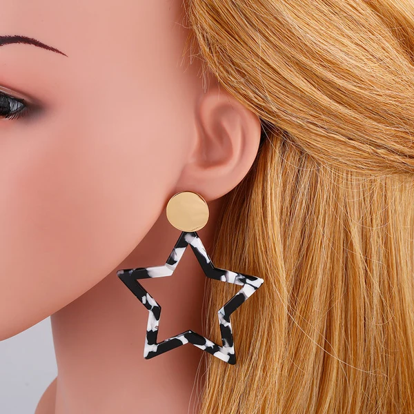 Акриловые серьги в европейском и американском стиле, преувеличенные, ацетатные пластины, креативные геометрические пятиконечные звезды, серьги с леопардовым принтом, женские, ert04