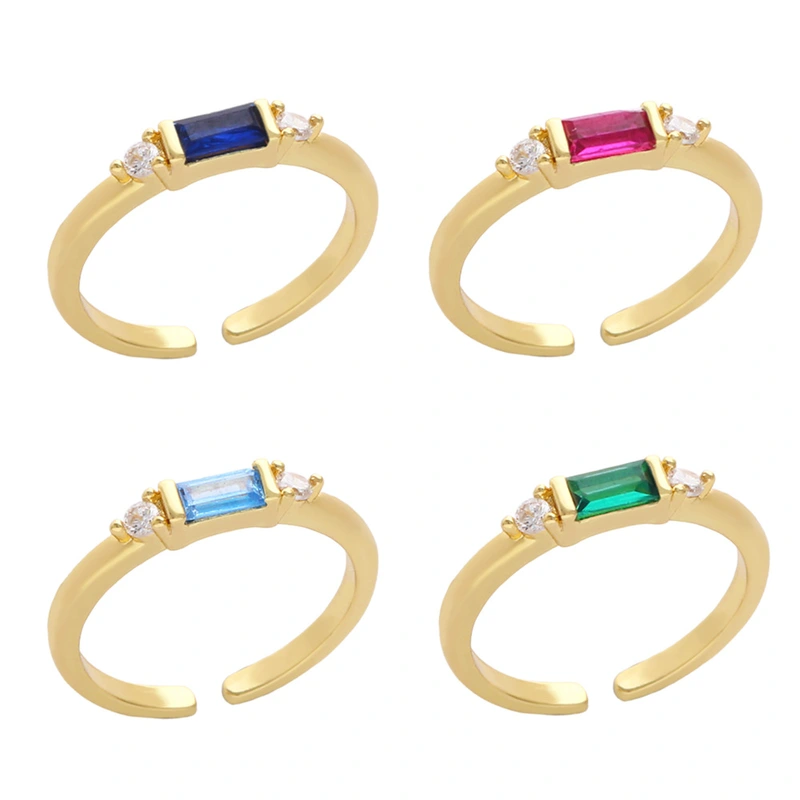 Весна 2023 года, европейское и американское простое, легкое, роскошное, холодное, стильное, инкрустированное цветным цирконом геометрическое открытое кольцо rin74