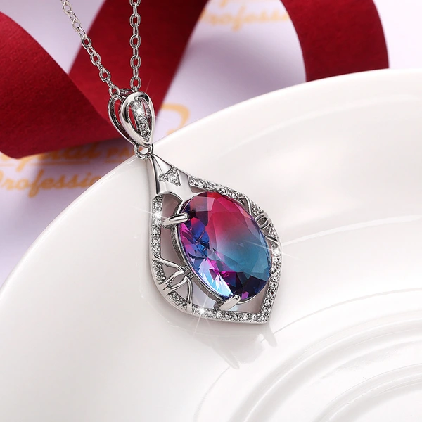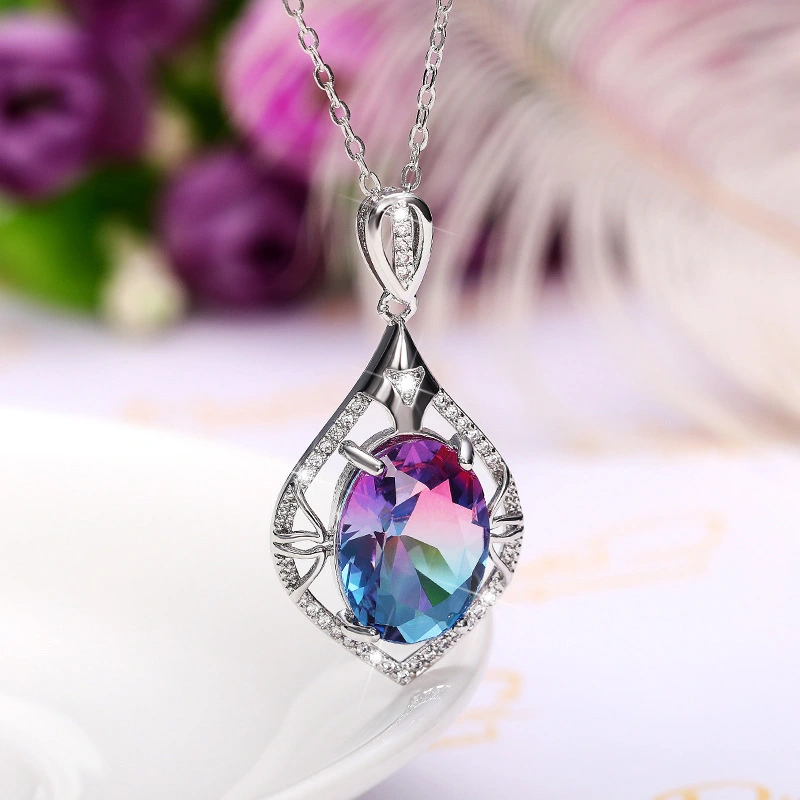 Винтажный кулон из цветного драгоценного камня в форме капли, изысканное ожерелье из цветного циркония с градиентом, аксессуары