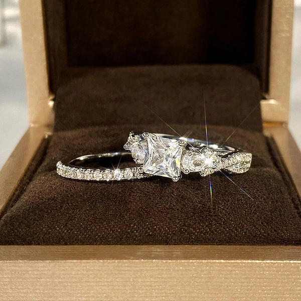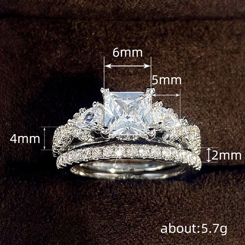 Новое кольцо принцессы в форме квадрата, популярное в европейском и американском стиле, инкрустированное цирконием, женское ювелирное кольцо для предложения руки и сердца