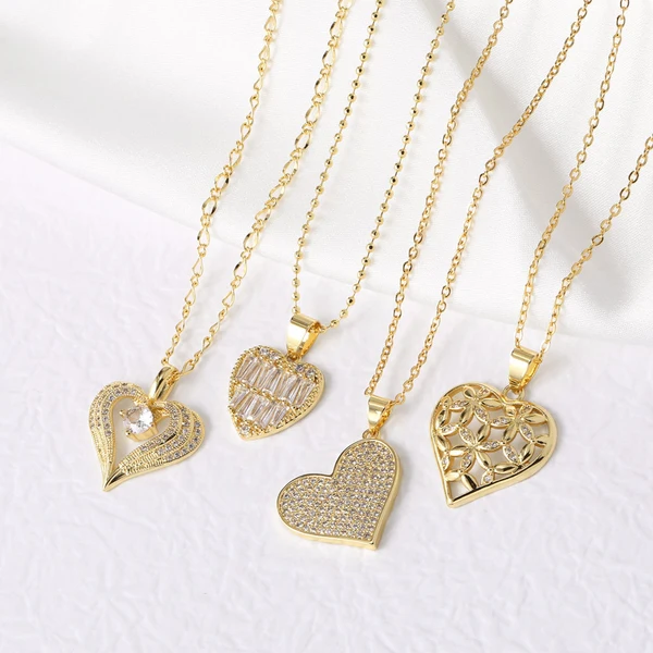 Новое популярное ювелирное украшение, ожерелье в форме сердца из жемчуга, покрытое медью, настоящее золото, полное цирконие, цепочка на ключицу nkb334