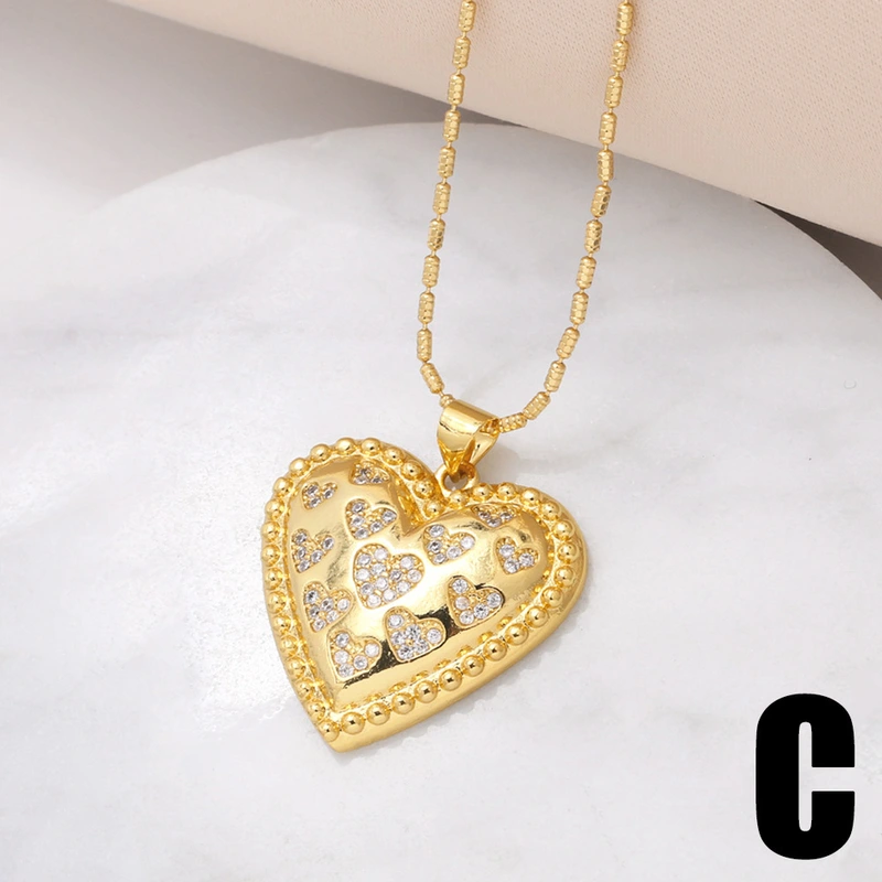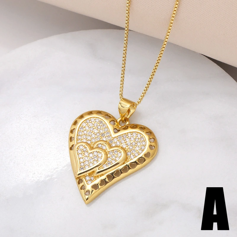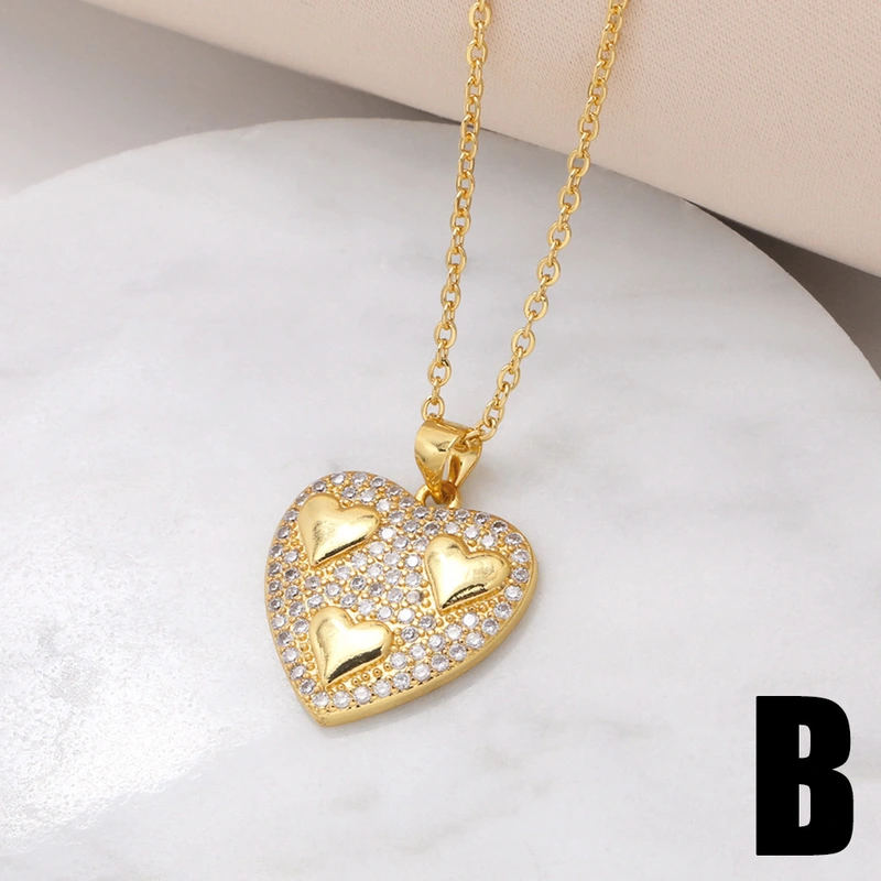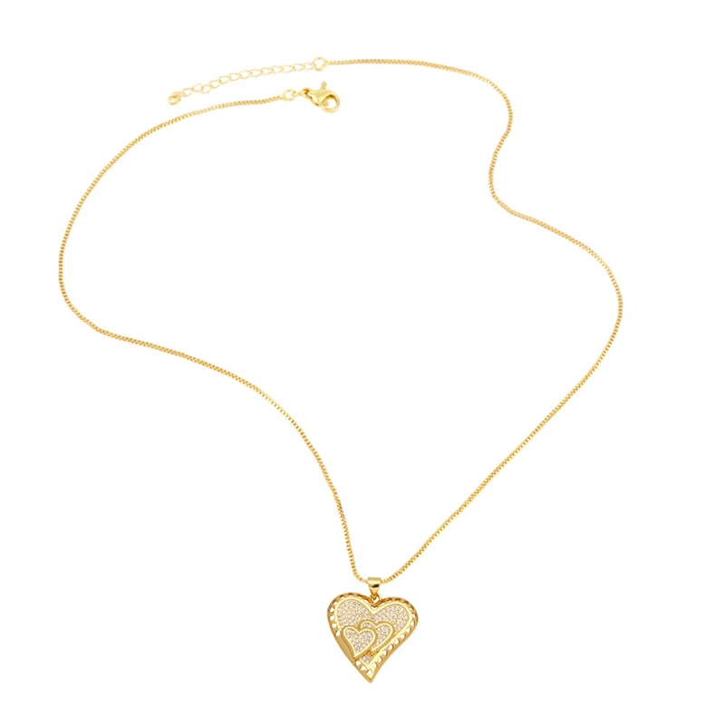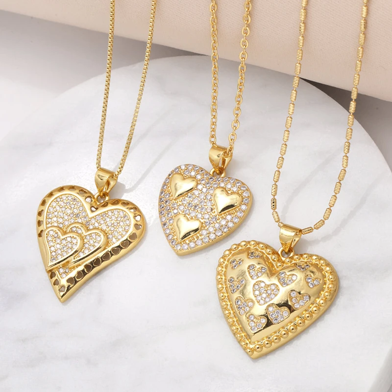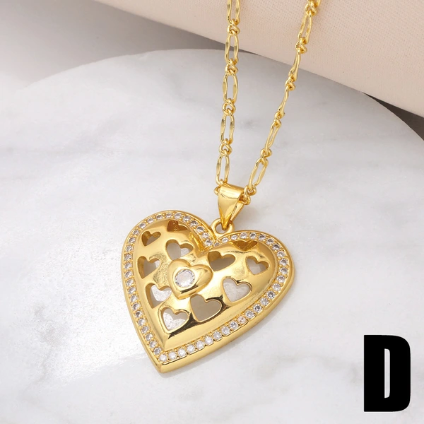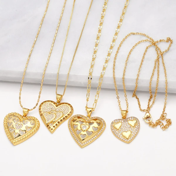 в качестве ювелирного украшения, европейское и американское ожерелье с кулоном в форме сердца, простое медное покрытие, инкрустированное настоящим золотом, с цирконами, ключичная цепочка nkt49