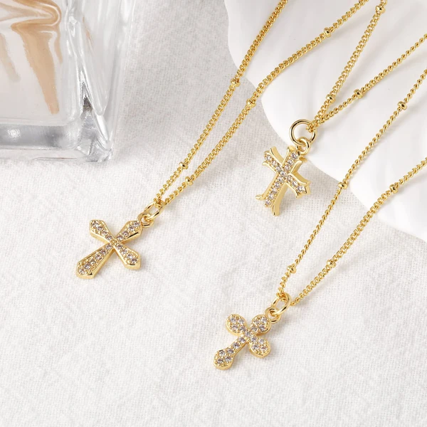 в качестве ювелирного украшения, золотое ожерелье с крестиком, женская медная цепочка на ключицу из 18-каратного золота высокого качества nkv25