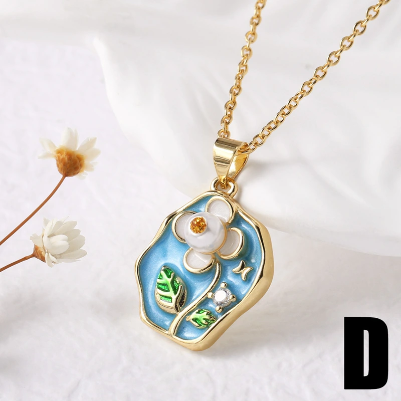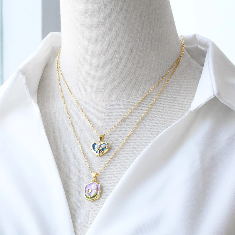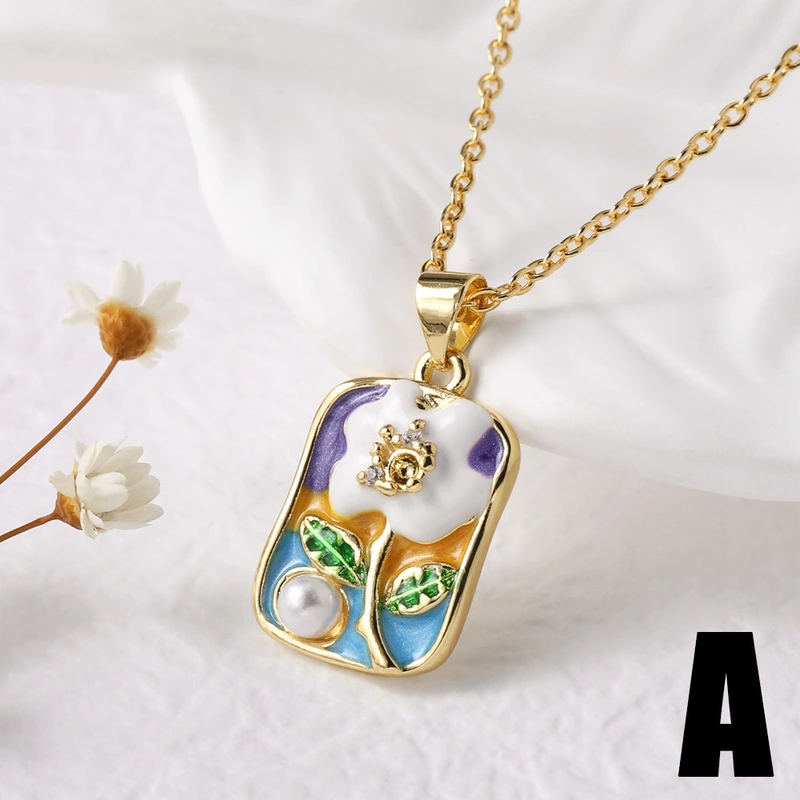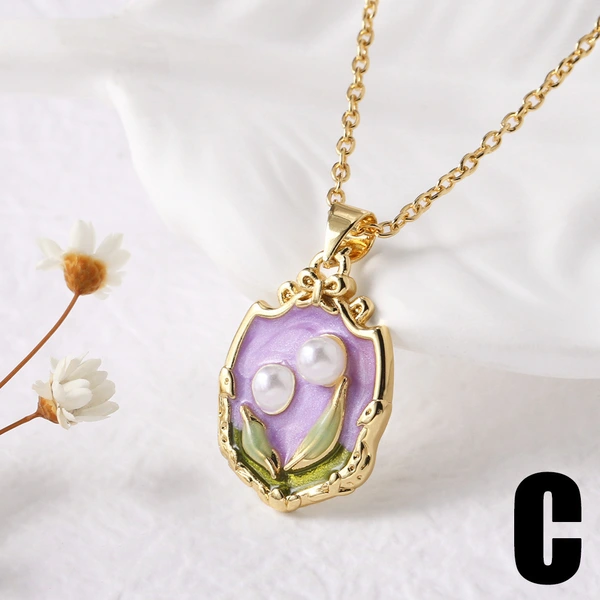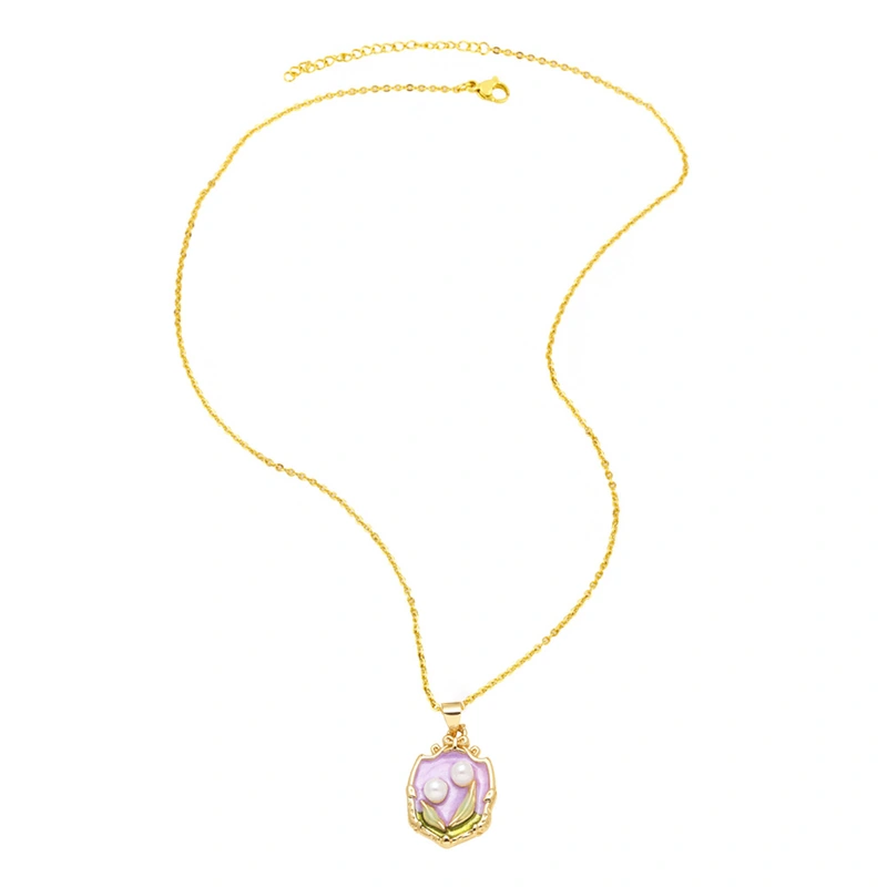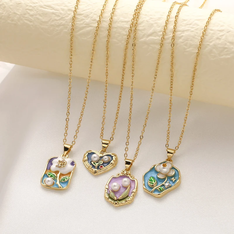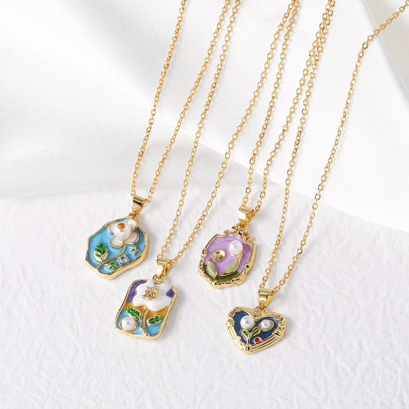 в качестве ювелирных изделий, горячая распродажа, жемчужная любовь, масляная живопись, кулон в виде цветка с каплей масла, позолоченное ожерелье, цепочка на ключицу nkv06