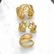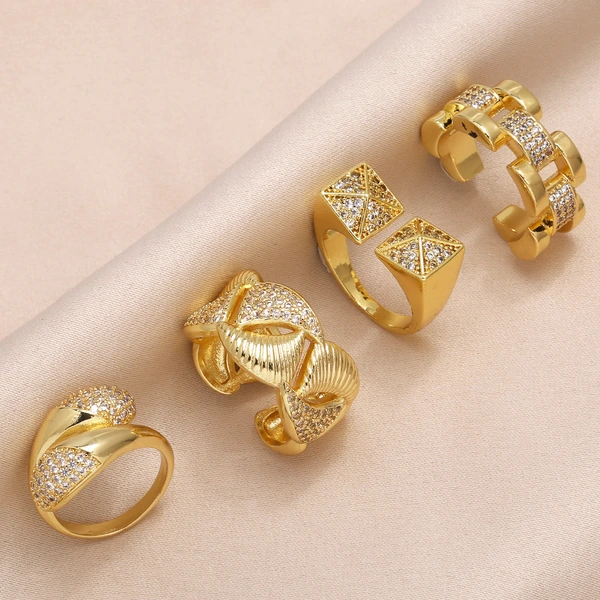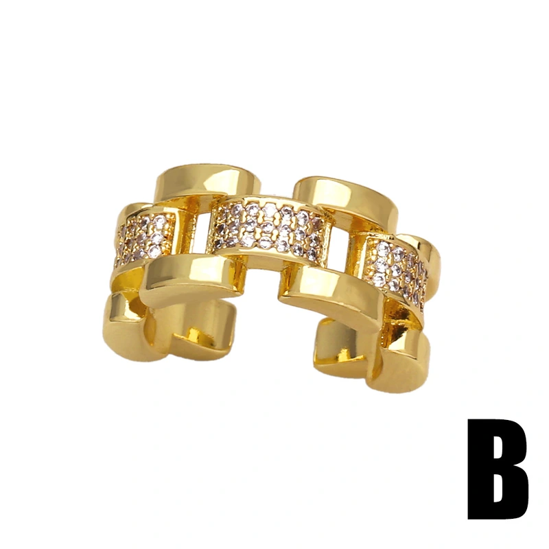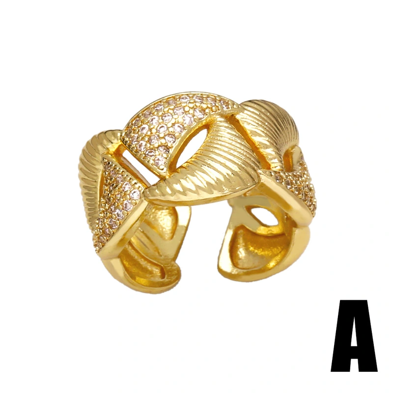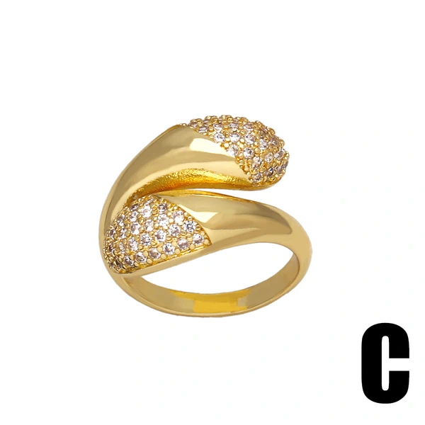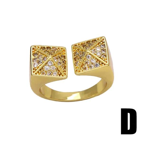 Горячая продажа геометрического открытого женского кольца с медным покрытием, инкрустированного настоящим золотом циркония неправильной формы, rip16