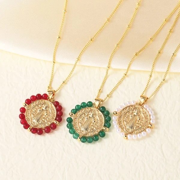 Горячая продажа ювелирных изделий, ожерелье с подвеской Девы Марии, покрытая медью, 18-каратное золото, цепочка для ключицы, женская, nkn31