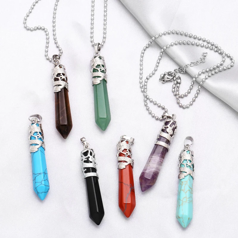 Горячая продажа ювелирных изделий оптом, кулон в форме шестиугольной колонны с кристаллом агата, унисекс, ожерелье nkb610