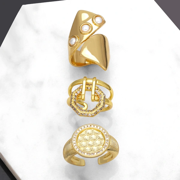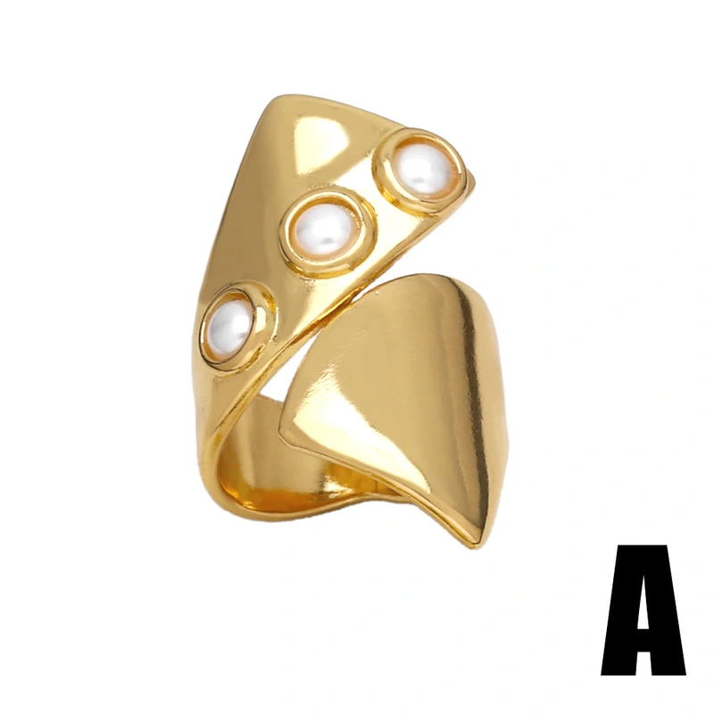 Горячее предложение, женское кольцо с жемчугом, легкое, роскошное, гладкое, медное, позолоченное, регулируемое кольцо rip28