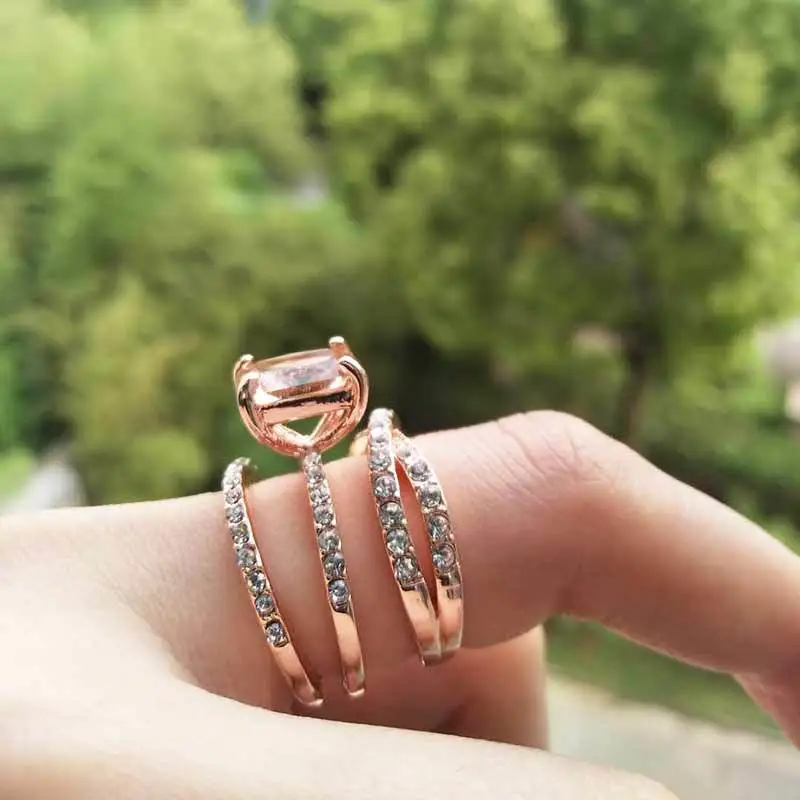 Горячие продажи комплектов из трех колец из розового золота с блестящим квадратным кольцом, европейское и американское обручальное кольцо цвета шампанского