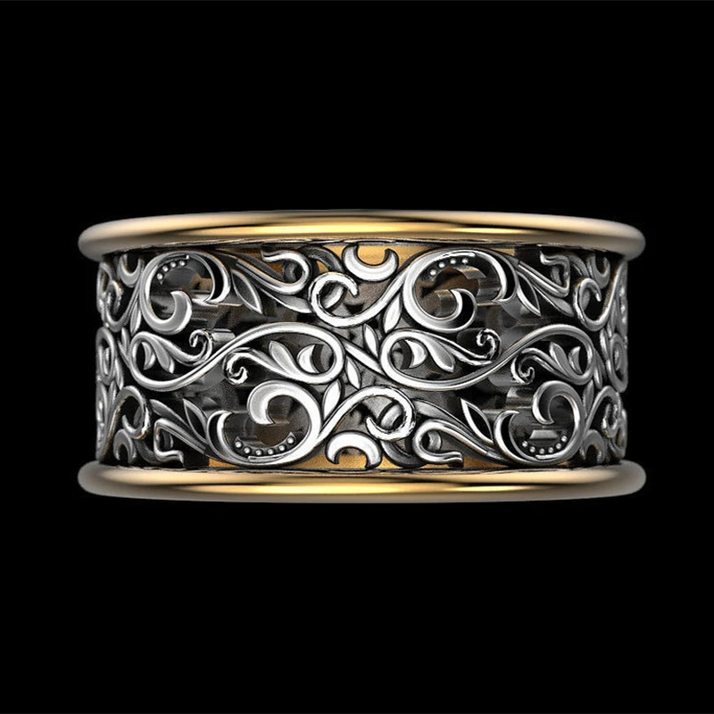 Горячие продажи креативных ретро-кольцов из сплава с полым узором, оптовая продажа европейских и американских ювелирных изделий
