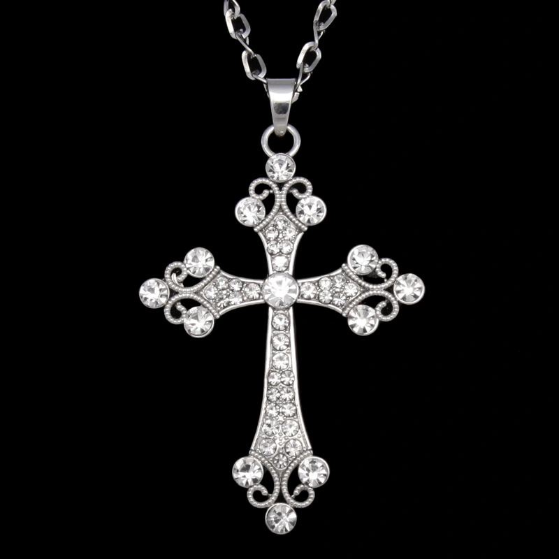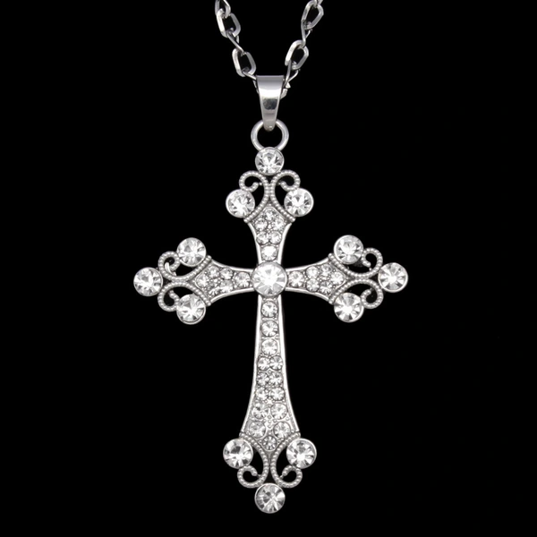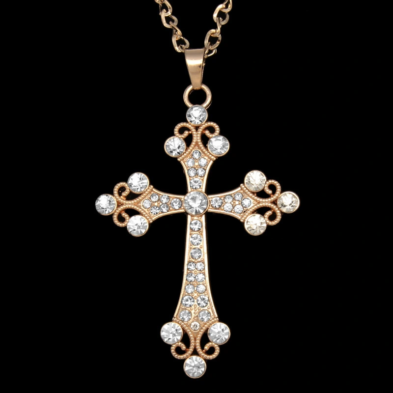 Горячие продажи ювелирных изделий, европейское и американское ретро-крестовое женское ожерелье, инкрустированное бриллиантами, кулон с кристаллами nkh77
