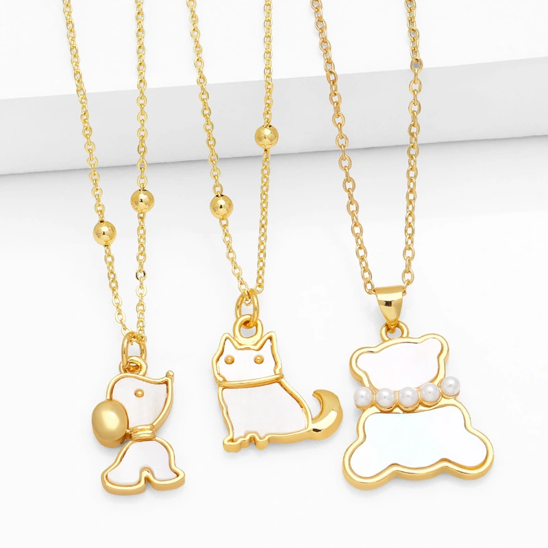 Горячие продажи ювелирных изделий из меди, ожерелье из настоящего золота с каплей масла, милое ожерелье с медведем, нишевое легкое роскошное ожерелье с цепочкой на ключицу nkp19