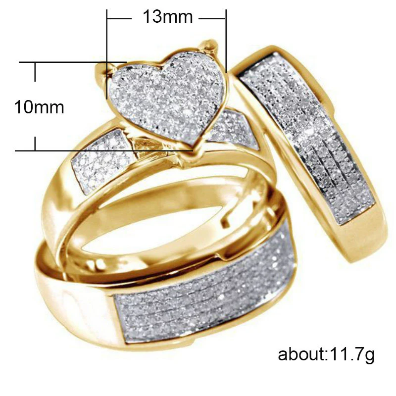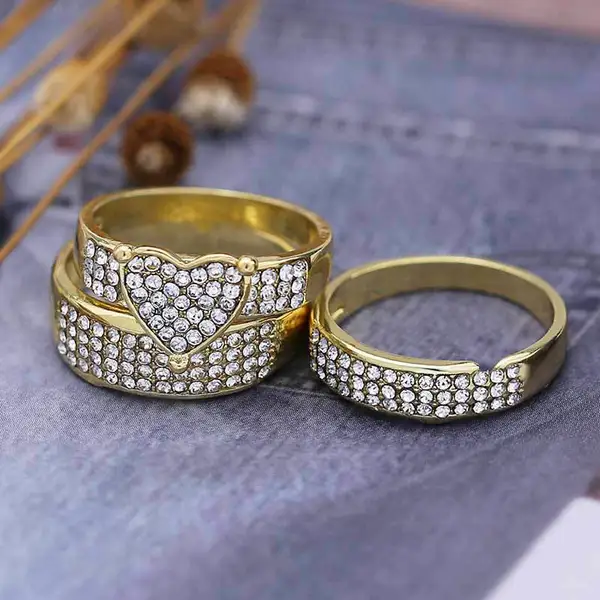 Горячий продавать комплект золотых колец со стразами, комплект колец для влюбленных пар, европейские и американские ювелирные изделия