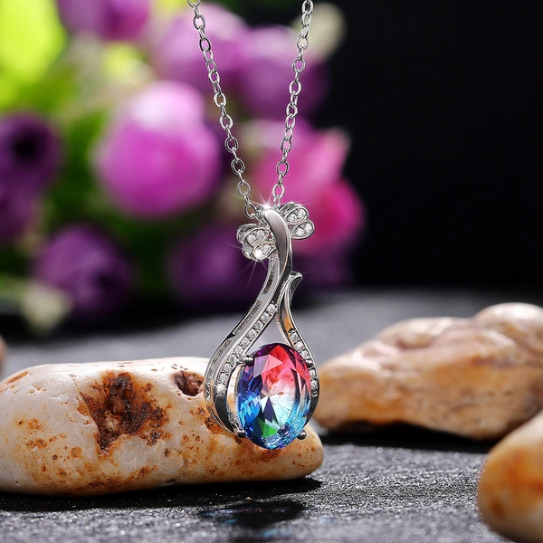 Европейская и американская модная серия цветных драгоценных камней, креативное женское ожерелье с подвеской пипа, микро-инкрустированное цирконием ожерелье на ключицу