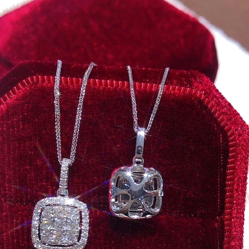 Европейские и американские новые легкие роскошные квадратные кулоны-ожерелья для женщин, инкрустированные цирконами, оптовые производители цепочек свитеров