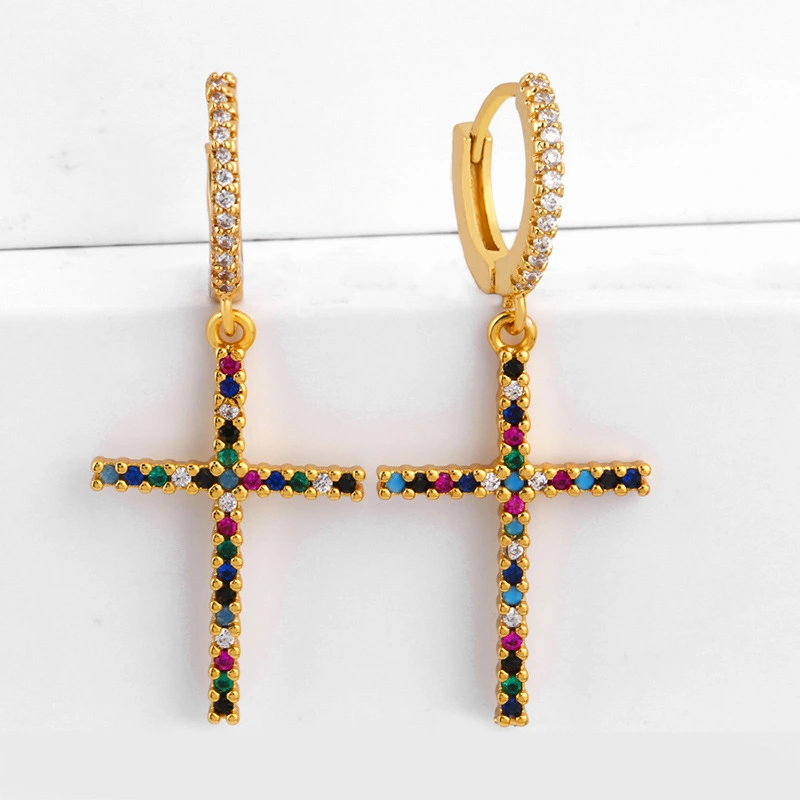 Европейские и американские трендовые серьги-крестики, медные, позолоченные, инкрустированные бриллиантами, серьги-крестики в форме сердца, женские серьги оптом err30