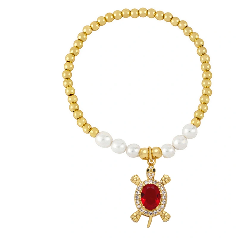 Европейские и американские украшения на руку, микро-инкрустированные цветным цирконием, браслет с подвеской в ​​виде морской черепахи в океаническом стиле, браслет с жемчугом bra93