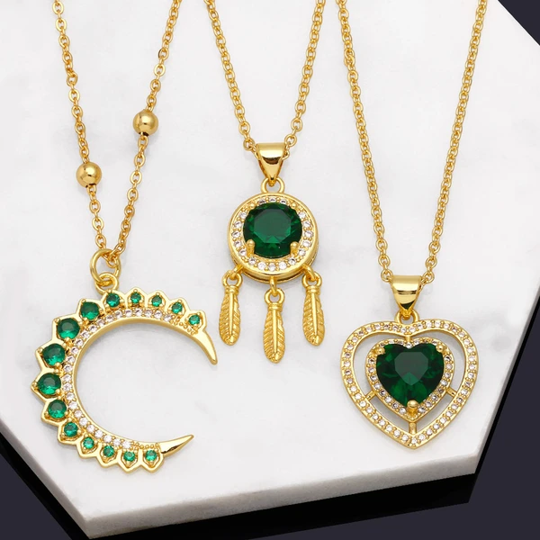 европейское и американское геометрическое ожерелье в форме сердца с луной, изумрудами и цирконами, нишевый дизайн, модный тренд, цепочка на ключицу nkb346