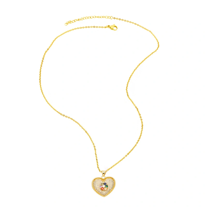 европейское и американское модное ожерелье с подвеской в ​​форме сердца из цветного циркония, цепочка на ключицу, nkt20