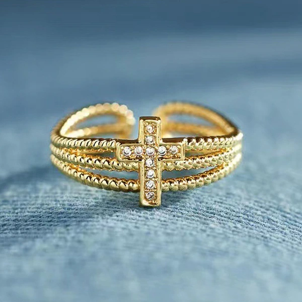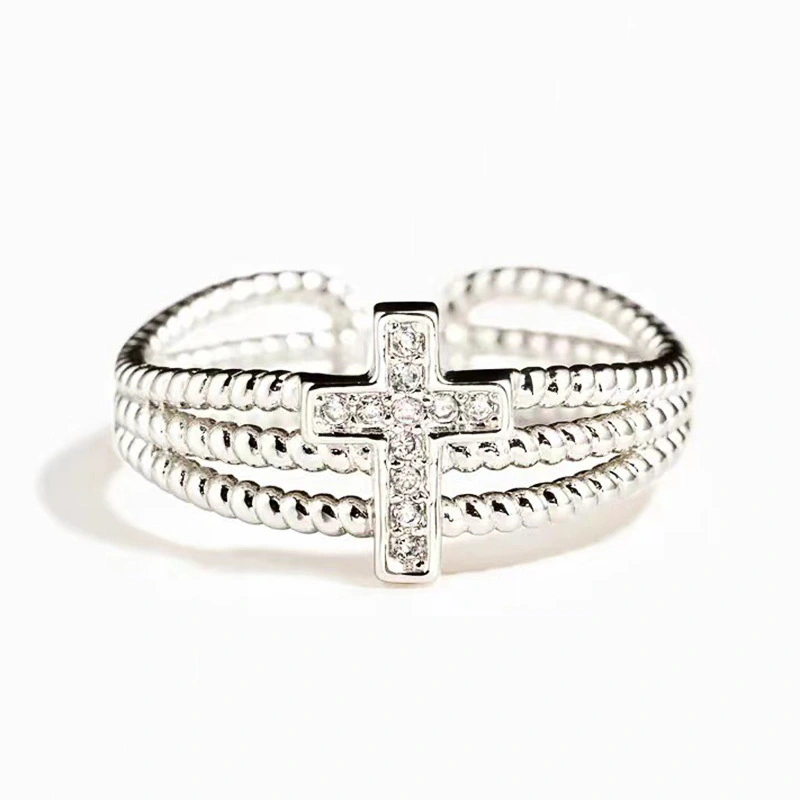 Новое кольцо с цирконием, полый крестик, четыре когтя, модное дизайнерское предложение, обручальное кольцо, подарок на день рождения
