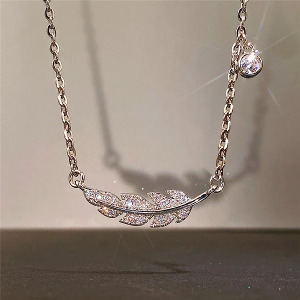 Женское ожерелье в форме листа с медной инкрустацией из циркония, короткое ожерелье в форме листа с ключицей, украшения в виде крыльев любви
