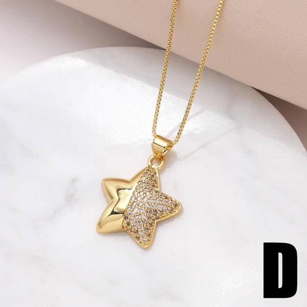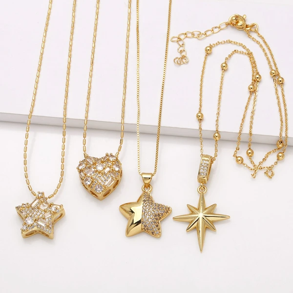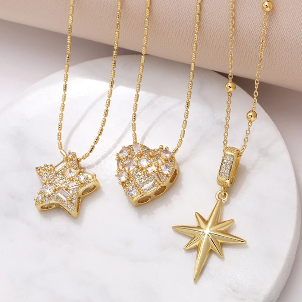 Женское ожерелье с подвеской в ​​виде сердца из циркония, покрытая медью, пятиконечная звезда, хип-хоп цепочка на ключицу nkr54