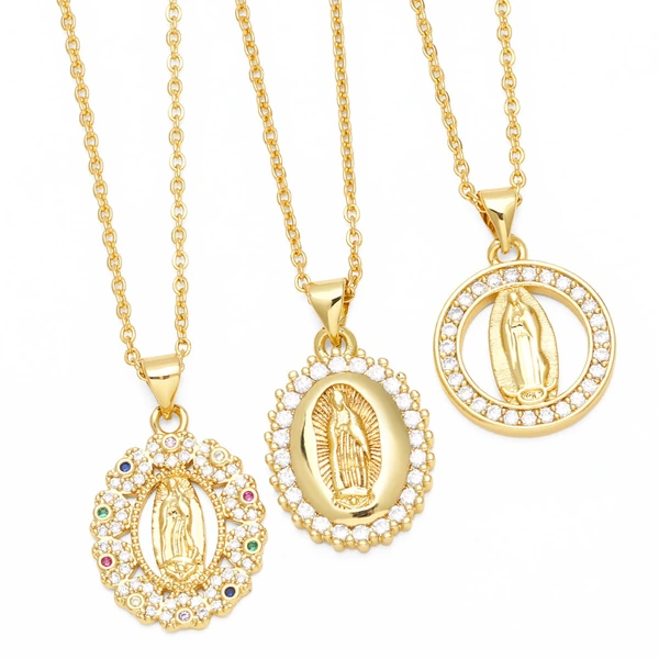 Изысканное европейское и американское ожерелье с подвеской в ​​виде Девы Марии, украшенное бриллиантами, нишевый дизайн, цепочка для свитера с Девой Марией, nkr24