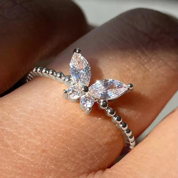 Изысканное и простое одинарное кольцо с бабочкой для женщин, модное и изысканное кольцо с инкрустацией из циркония, персонализированное повседневное кольцо