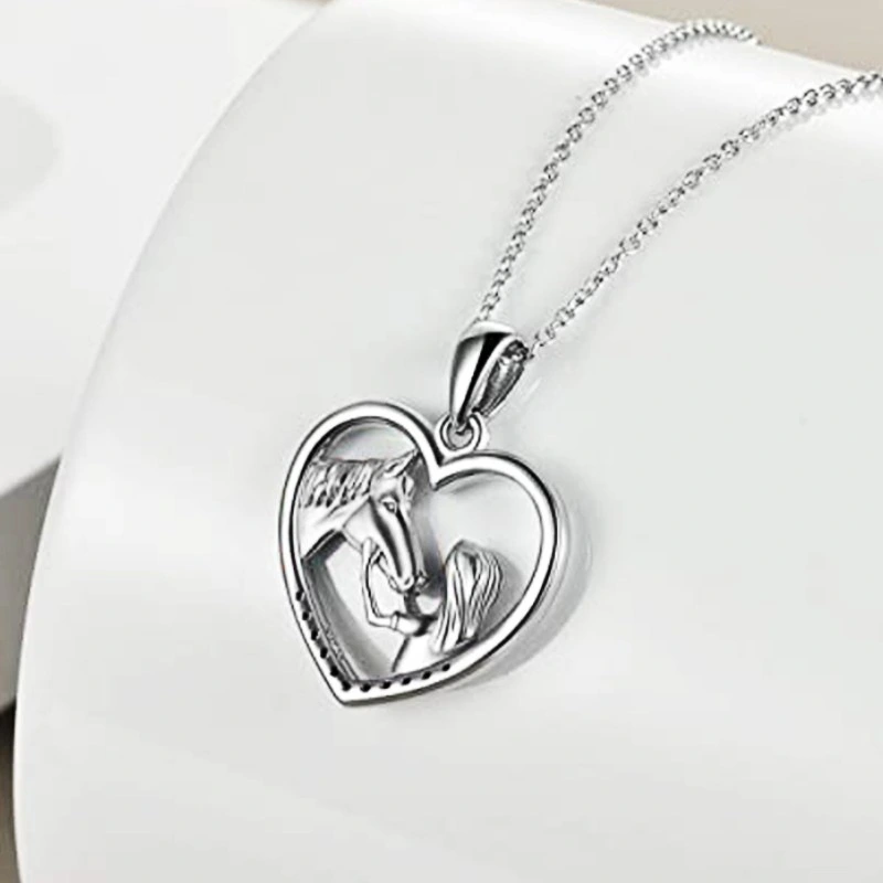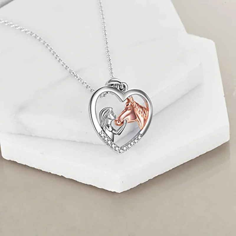 Интернет-бижутерия знаменитостей, европейская и американская мода, ожерелье с микро-инкрустацией в форме сердца, двухцветный кулон «Девушка и лошадь»