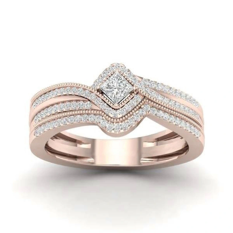 Новое кольцо принцессы в форме квадрата, популярное в европейском и американском стиле, инкрустированное цирконием, женское ювелирное кольцо для предложения руки и сердца