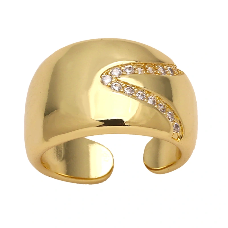 как ювелирное изделие, гладкое позолоченное открытое кольцо, женское кольцо, инкрустированное цирконием, звездное кольцо rin59