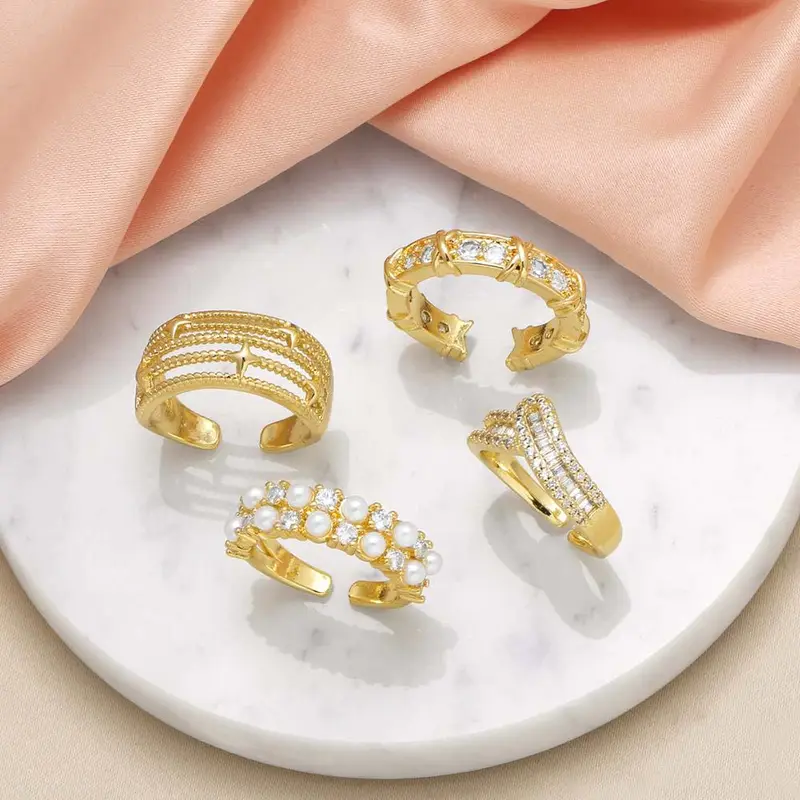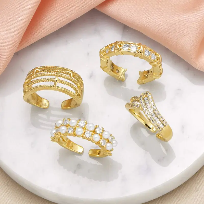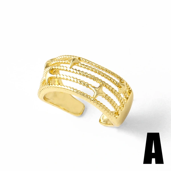как ювелирное изделие, двухслойное открытое женское кольцо с медным покрытием, 18-каратное золото, неправильной формы, rih95