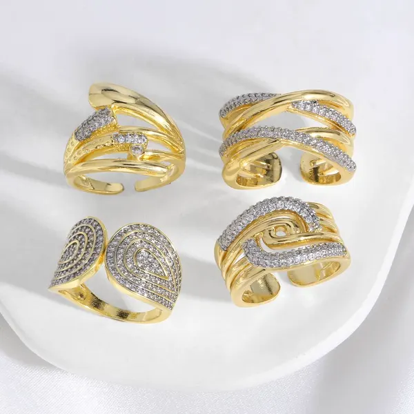 Классическое женское кольцо с четырьмя лапками, имитирующее циркон, с микро-инкрустацией, двухрядное двухцветное кольцо с поворотной рукояткой, обручальное кольцо для женщин
