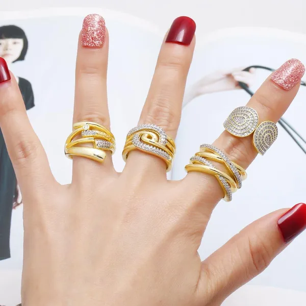 Кольцо класса люкс в европейском и американском стиле, модное, темпераментное, с циркониевым кольцом в форме конского глаза, многослойное, полое, с дизайном для указательного пальца