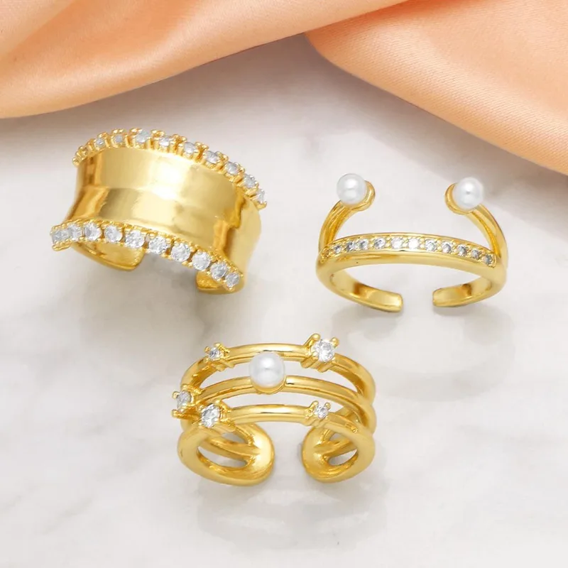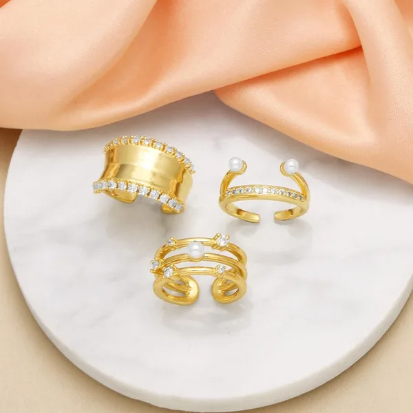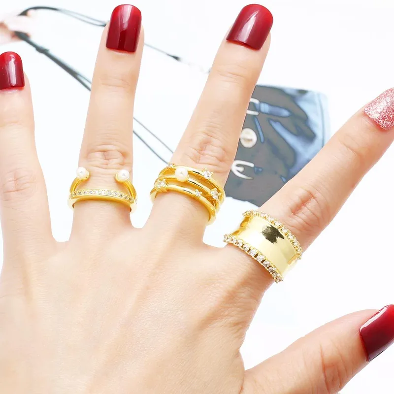 как ювелирное изделие, новое модное кольцо с жемчугом, современное универсальное кольцо с медным покрытием, браслет из 18-каратного золота, обод04