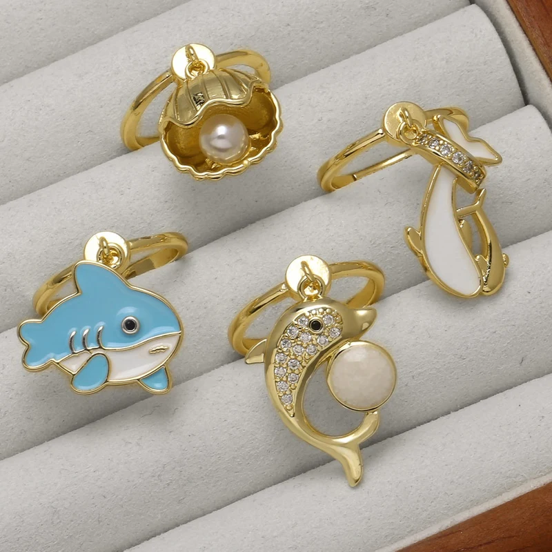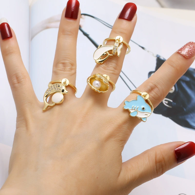 как ювелирное изделие, новое позолоченное кольцо с каплей океана и маслом в виде ракушки дельфина Rip68