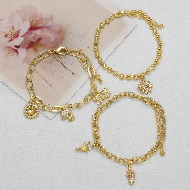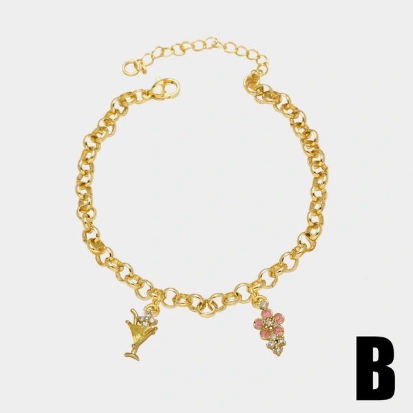 Новый браслет с подвеской в ​​виде вишни, полностью выполненный из циркония, позолоченный браслет с бабочкой на руку, браслет brj17