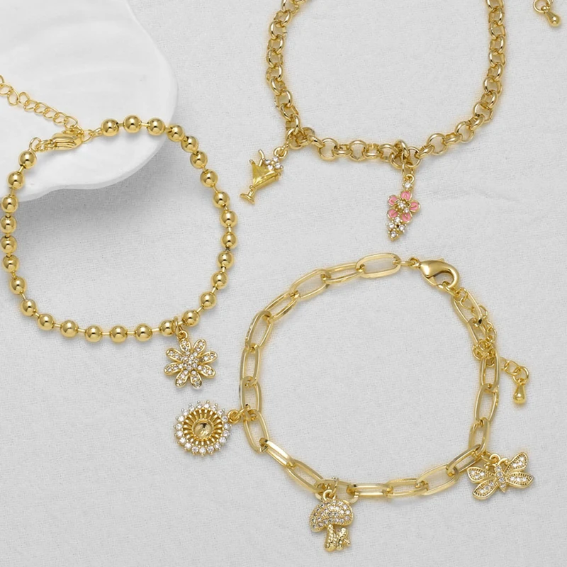 как ювелирное изделие, новый хит продаж, браслет с подвеской в ​​виде цветка-гриба из цельного циркония brn38