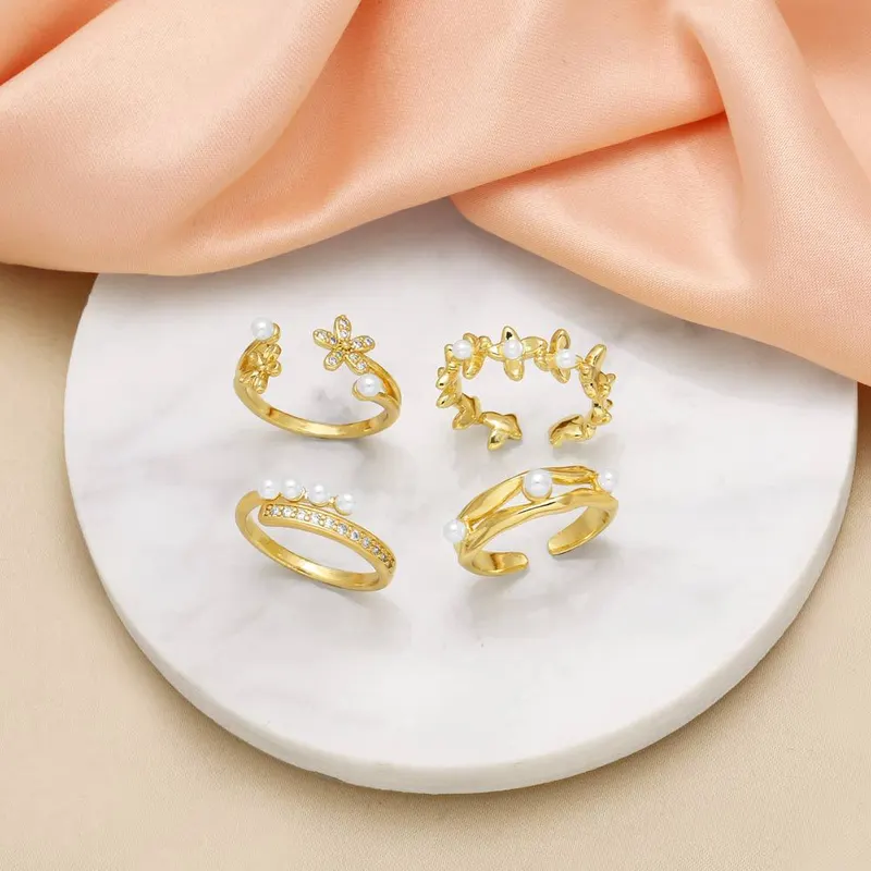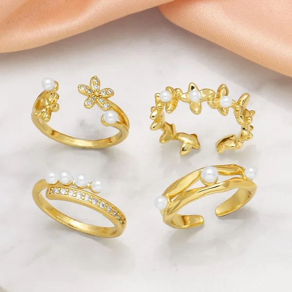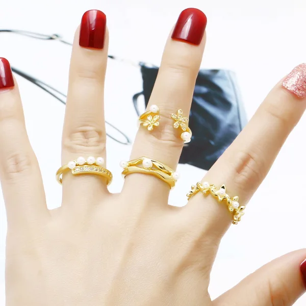 как ювелирное изделие, популярное женское кольцо с цветочным жемчугом, универсальное позолоченное открытое кольцо rij86