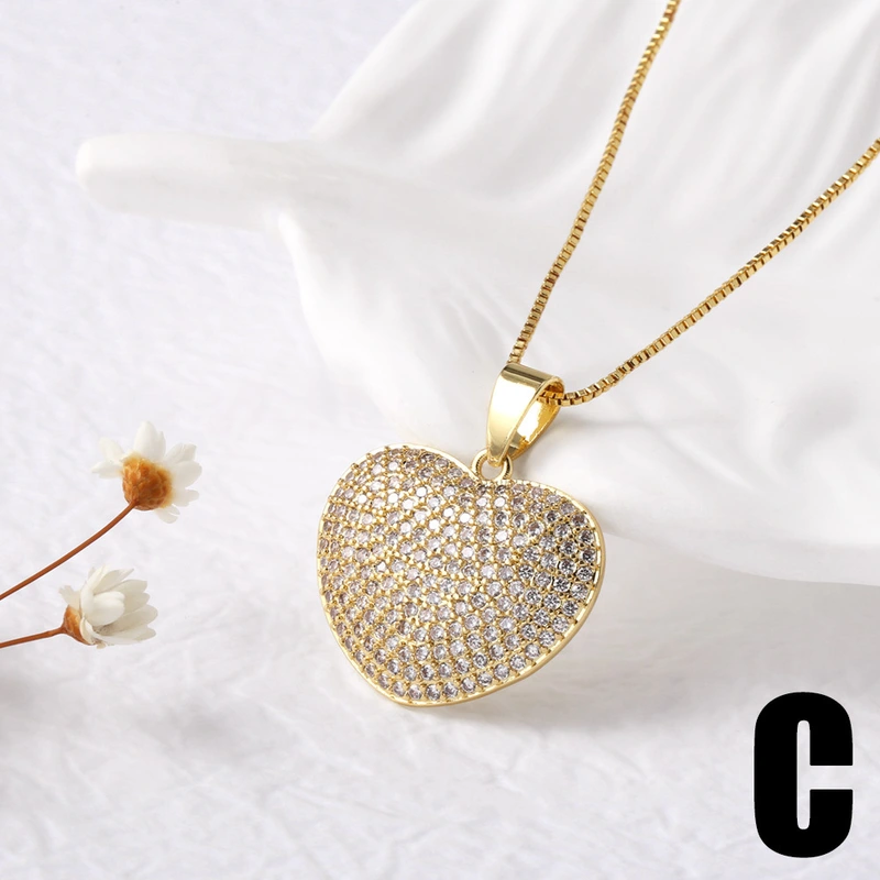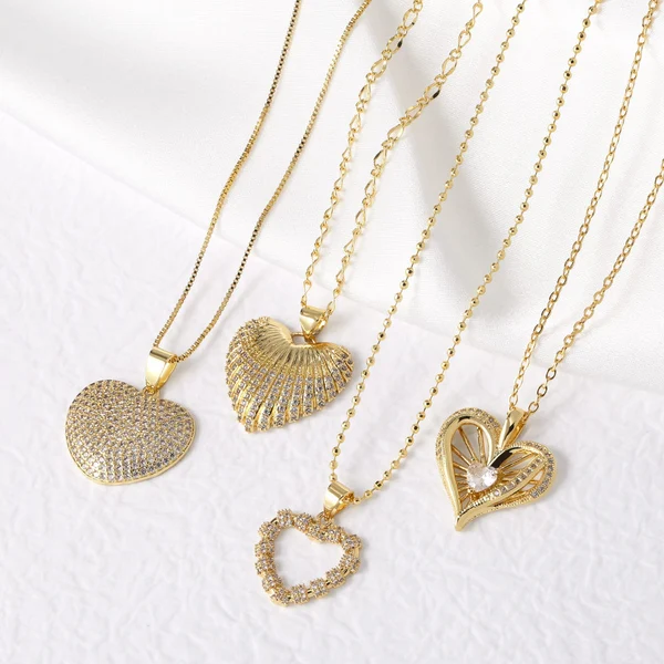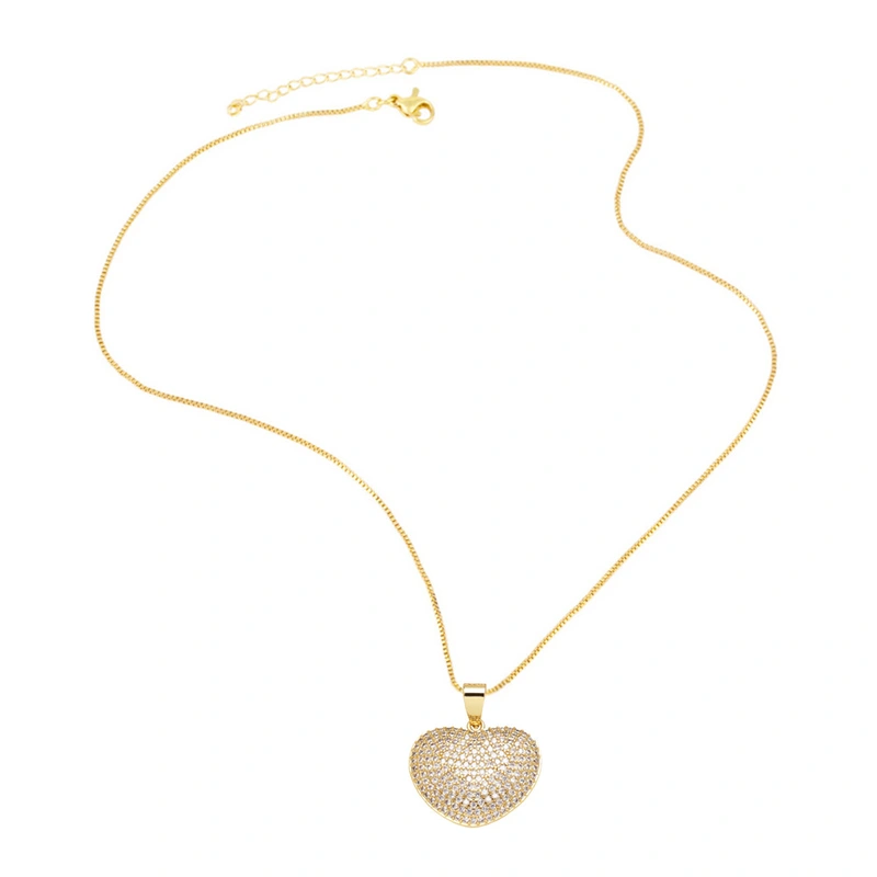 как ювелирное украшение в европейском и американском стиле, ожерелье с подвеской в ​​форме сердца из цельного циркония, позолоченная цепочка в форме персикового сердца на ключицу nkn34