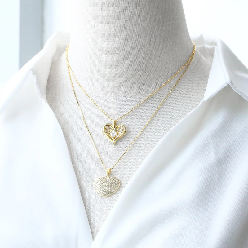 Новое популярное ювелирное украшение, ожерелье в форме сердца из жемчуга, покрытое медью, настоящее золото, полное цирконие, цепочка на ключицу nkb334