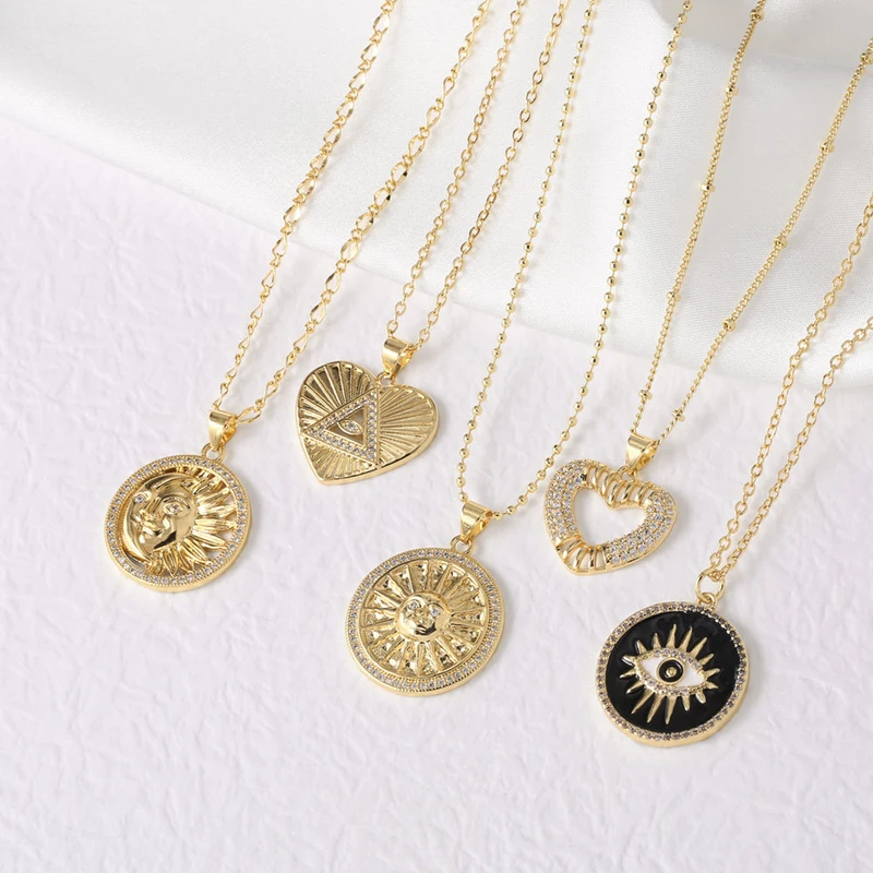 как ювелирное украшение, ожерелье с подвеской в ​​виде сердца и глаза, покрытая медью, 18-каратное золото, ключичная цепочка nkb363