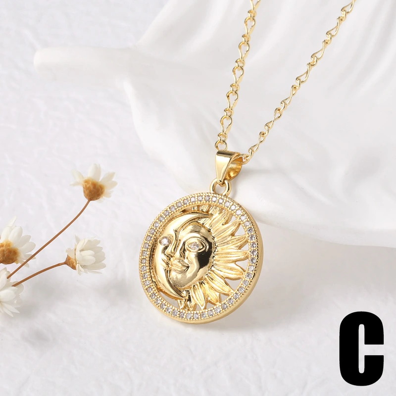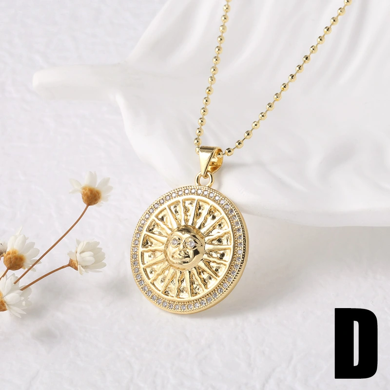 как ювелирное украшение ретро-ожерелье с подвеской в ​​виде солнца, покрытая медью, настоящее золото, пятиконечная звезда, ключичная цепочка nkz04